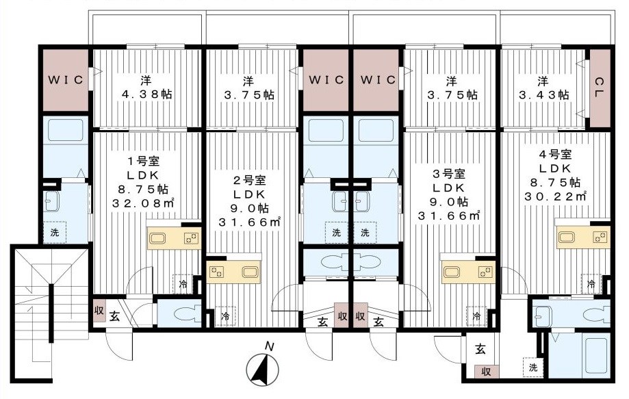 ★1LDK12戸!広めの間取! 設備・仕様:オートロック・宅配ボックス・フローリング・TVインターホン・2口ガスキッチン・ウォークインクローゼット(一部除外)・浴室暖房乾燥機・シャンプードレッサー・電気・公共上下水・プロパンガス等 宅地 市街化区域 2方道路:北側公道幅員約4M・西側幅員約25M