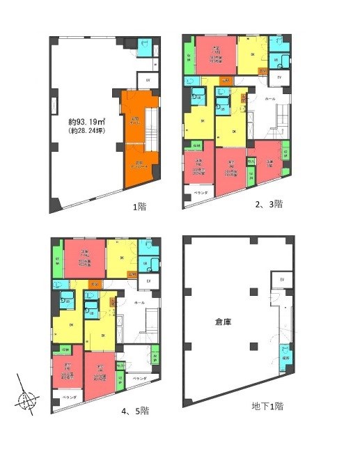 ★地下1階:倉庫・1階:店舗×2・2-3階:住戸×3・4-5階:住戸×3 エレベーター有