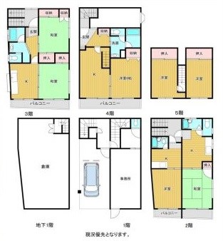 ★駐車場1台・地下1階1階トランクルーム・2階住戸2戸・3階住戸1戸・4階5階住居1戸(メゾネットタイプ) 設備:東京電力・都市ガス・公営水道・本下水 市街化区域 設計図有