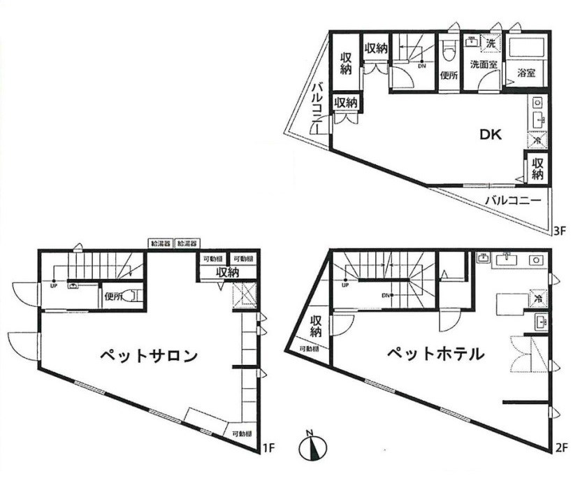 ★1Fペットサロン・2Fペットホテル・3F住居 3F用オートロック有 各専有面積:不明 接道:南西側約10M公道 検査済証・構造計画書有